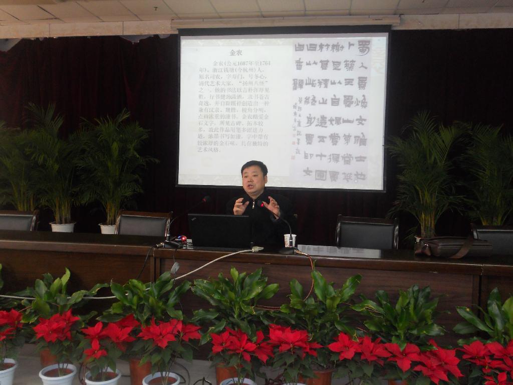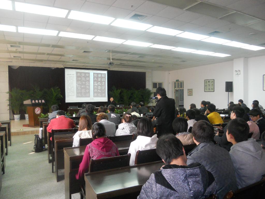 3月17日上午,陕西省古籍整理办公室主任、陕西省社会科学院古籍研究所所长、陕西书画协会副主席何炳武教授,应邀在图书馆报告厅为我院艺术系师生作了题为《中国书法艺术鉴赏》的报告,艺术系美术专业师生以及我院书法爱好者聆听了报告。