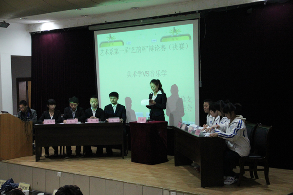 为进一步加强和改进大学生思想政治教育,活跃校园文化生活,培养高素质应用型人才,促进学生全面发展,艺术系历时三个周,开展了首届“艺韵杯”辩论赛。参赛的各个班级,按照班级初选、专业组队的方案,进行分组赛和总决赛,最后音乐学代表队与美术学代表队通过层层选拔、多轮角逐进入决赛。