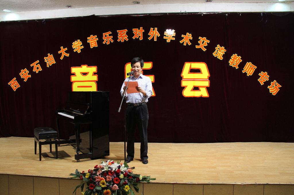 在为期两天的学术交流活动中,西安石油大学音乐系教师与我系音乐教研室部分教师进行了有关专业建设、课程设置、教学方式方法等方面的交流,并与5月13日晚7:30分在我院1号教学楼6楼报告厅举行了“学术交流教师专场音乐会”。