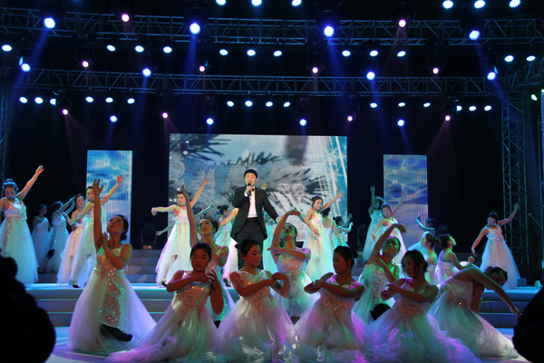弦歌欢会庆元旦,舞乐雅集贺新春。12月24日、25日,我院2011年“四季飞歌”元旦歌舞晚会在西校区大礼堂进行演出。安康市委书记刘建明,市长方玮峰,市委副书记崔光华,市委常委、市委秘书长马赟,市人大常委会副主任吴德珠等市上领导、各县区领导、各部门负责人、社会各界人士以及我校师生观看了晚会。