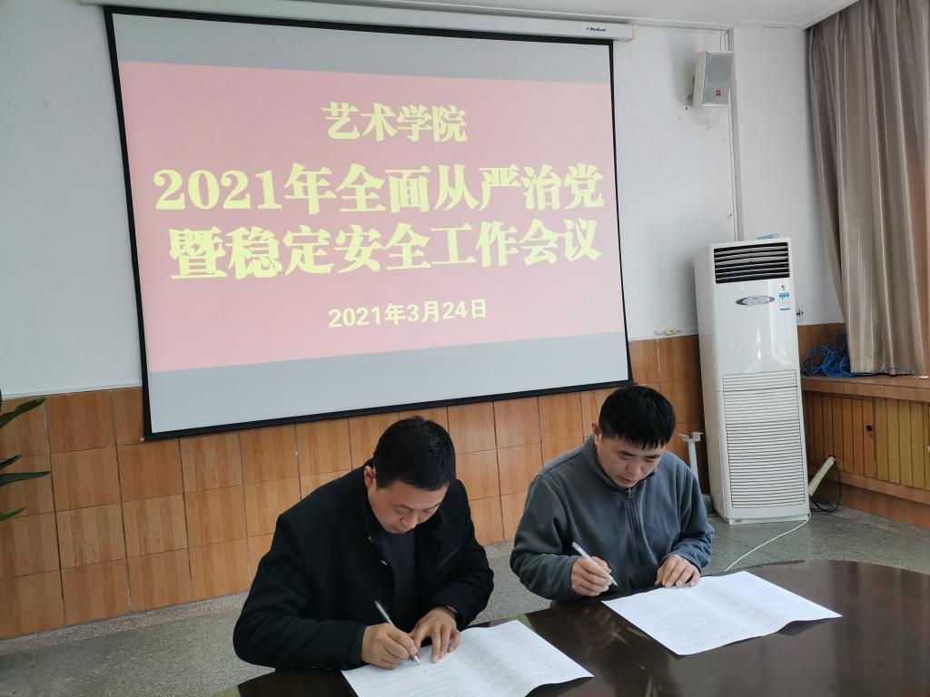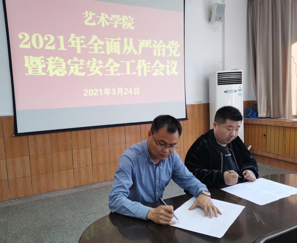 最后,樊仁杰结合工作实际回顾了我院2020年全面从严治党、稳定安全工作,肯定了工作成绩,指出了存在的问题,并就如何做好我院2021年全面从严治党、稳定安全工作讲了四点意见:一是要要进一步强化政治建设,不断加强理论武装。认真学习贯彻落实习近平总书记关于全面从严治党的重要讲话精神,坚持用党的创新理论武装头脑、指导实践、推动工作。二是要进一步强化安全意识,提升风险防控能力。要不断树牢底线思维,增强风险意识,将政治安全、舆情处置及防范各种风险作为学院重点工作常抓不懈,扎实做好稳定安全各项工作,落实落细各项疫情防控措施,层层落实全院行政人员的岗位责任。三是要进一步树牢纪律意识,不断加强作风建设。认真落实我院加强纪律工作的几点意见,大力弘扬“勤快严实精细廉”的优良作风,以一线师生的良好感受和取得工作实效作为检验全面从严治党效果的重要依据。四是进一步加强党建引领,深度融合业务工作。认真将新时代的党的建设总要求和新时代党的组织路线贯穿于专业建设、师德师风、教育教学、科研创作、就业创业以及社会服务等各项工作的全过程。