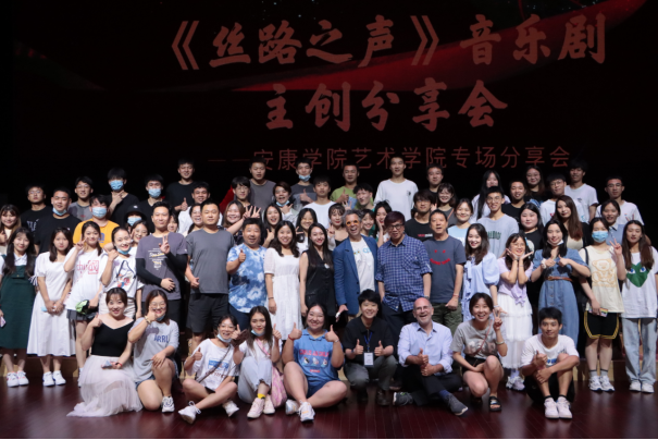 为提高音乐学专业学生实训类课程调研能力,提高学生艺术专业修养,开拓民间音乐视野,促进专业水平的提升,我院组织部分师生赴安康大剧院开展《陕南民间音乐调研》课程实践教学活动——观摩音乐剧《丝路之声》,并与该剧主要创编人员进行了观摩交流。编剧:MARC ACITO,作曲:金培达,作词:梁芒,导演:GABRIEL BARRE,指挥:MATTHEW LIU,执行制作人:DON FRANTZ等与我院师生亲切交流、分享该剧的创编过程及幕后故事。