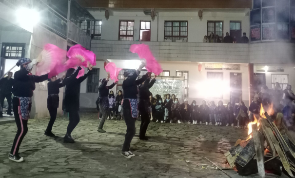 21日晚,得知我们第二天要离开,杨叔一家人特地为本次写生准备了一场具有山里特色的篝火晚会,安康学院、宝鸡文理学院的师生们齐聚一堂,大家载歌载舞,让原本寒冷静寂的村庄充满了艺术与情感的气氛。