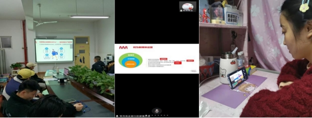 首先由北京AAA教育集团有限公司产品总监李静宣讲,她从联网行业发展前景、互联网相关专业情况、专业市场人才需求等方面做了详细的分析,然后展示了AAA教育学员的学习和工作环境状况,展示了学员优秀作品。接下来,由鱼游四海科技有限公司运营总监刘超毅宣讲,他介绍了公司的概况、就业实习岗位、福利待遇、免费培训选拔流程;特别对UI设计师、产品经理、新媒体运营、大数据分析师、社群运营、设计师助理、行政专员/文员和文案策划等8个招聘岗位做了详细讲解。最后,有意向的同学分别和招聘单位互相加了微信,后期有针对性进行面试。