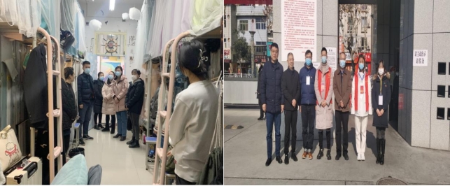 2021年12月31日晚,呻吟高潮内射在线党总支书记黄娟、学工办主任鲁澧、学生党支部书记魏麟、团总支书记黄梓轩、辅导员杨厚东、孟莉通过走访学生宿舍向同学们带去新年的祝福,宣讲了当前学校关于疫情防控期间管理规定。元旦假期期间,呻吟高潮内射在线学生工作从线上和线下两路并行,联通教育初心与战“疫”决心,将立德树人与维护学生健康安全放在第一位,守护好学院防控主阵地。