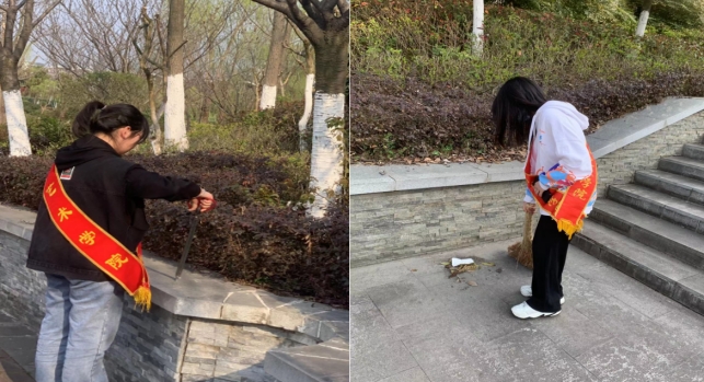 在清扫校园卫生活动过程中,我院志愿者领取了扫把、夹钳、垃圾袋等劳动工具后,开始认真捡拾校园内草坪、花坛、道路上的垃圾,细心清理绿植上的枯枝败叶,每个人自始至终都保持一种积极昂扬的态度,用实际行动践行着“奉献、友爱、互助、进步”的志愿服务精神。经过大家共同的努力,校园变得更加干净、舒适、整洁,环境面貌焕然一新。