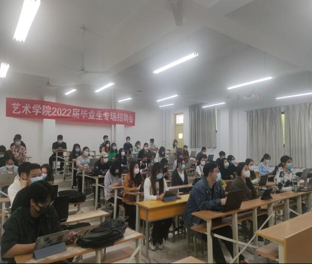 随后,郑武斌介绍了学校就业信息服务和招聘信息搜索方式,并通过具体数据就当前就业创业难点痛点进行了分析。此外,他结合实际从艺术类专业就业情况、就业创业技巧方法等方面与毕业生进行了分享和交流,希望同学们能够充分认识当前严峻就业形势,保持良好的就业心态,做好充分就业准备,用积极的态度、最佳的状态投入到毕业和就业各项工作中。