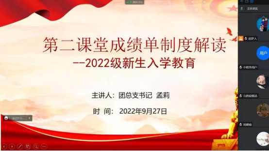 为使2022级新生初步了解学院人才培养计划,尽快适应大学新生活。9月27日下午,呻吟高潮内射在线在线上开展了“第二课堂成绩单制度解读”专题讲座。本次讲座由团总支书记孟莉主讲,2022级全体新生参加活动。