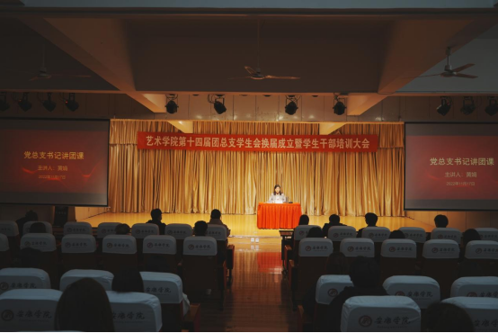 2022年11月17日晚,呻吟高潮内射在线第十四届团总支学生会换届成立暨学生干部培训大会在江北校区1401演艺厅顺利召开。呻吟高潮内射在线党总支书记黄娟、学工办主任鲁澧、学生党支部书记魏麟、辅导员李博、邱青晓以及校学生会、各二级学院主席团代表、呻吟高潮内射在线全体团总支学生会成员参加了本次大会。大会由团总支书记孟莉主持。