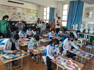 见习期间,建民镇初中见习指导老师为学生做了全方位的指导,学生分组进行美术课堂教学的观摩学习、课后交流及参加美术社团活动,认真学习与总结任课教师课堂教学环节等的开展情况,以及在课后认真地与任课教师进行交流。