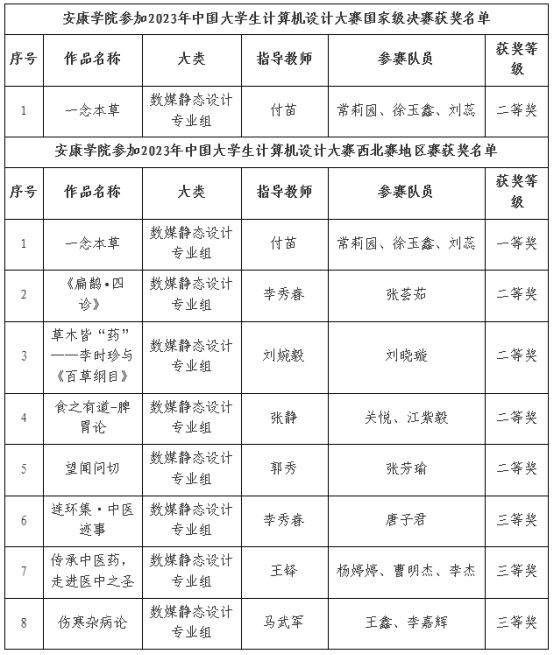 近日,由教育部高校与计算机相关教指委等联合主办的2023年(第16届)中国大学生计算机设计大赛结果揭晓,学院学子在此次比赛中荣获国赛二等奖1项,在此前的省赛中(西北赛区)荣获一等奖1项、二等奖4项、三等奖3项。