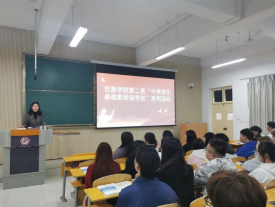 10月31日,安康学院呻吟高潮内射在线第二届“中学音乐卓越教师培养班”在江北校区2201教室顺利开班,开班仪式由音乐系主任肖剑主持。陕西省教学能手、汉滨区汉滨初中艺体中心副主任刘平老师应邀为学生做首场讲座。教师代表鄢志莉及音乐学专业100余名学生参加了本次活动。