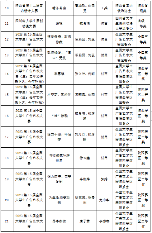 2023年,呻吟高潮内射在线学子在16届中国大学生计算机设计大赛、第15届全国大学生广告艺术大赛、第十四届“挑战杯”陕汽集团陕西省大学生课外学术科技作品竞赛、第九届“互联网+”大学生创新创业大赛、“汉水乐歌——汉江流域大学联盟首届音乐与舞蹈学科学生专业展演”活动等各类比赛中获得省级以上比赛奖项110项,其中国家级二等奖2项、三等奖2项,省级一等奖7项、二等奖31、三等奖38项、优秀奖29项。以赛促学、以赛促教、以赛促改,有效的促进了艺术类应用型人才培养。