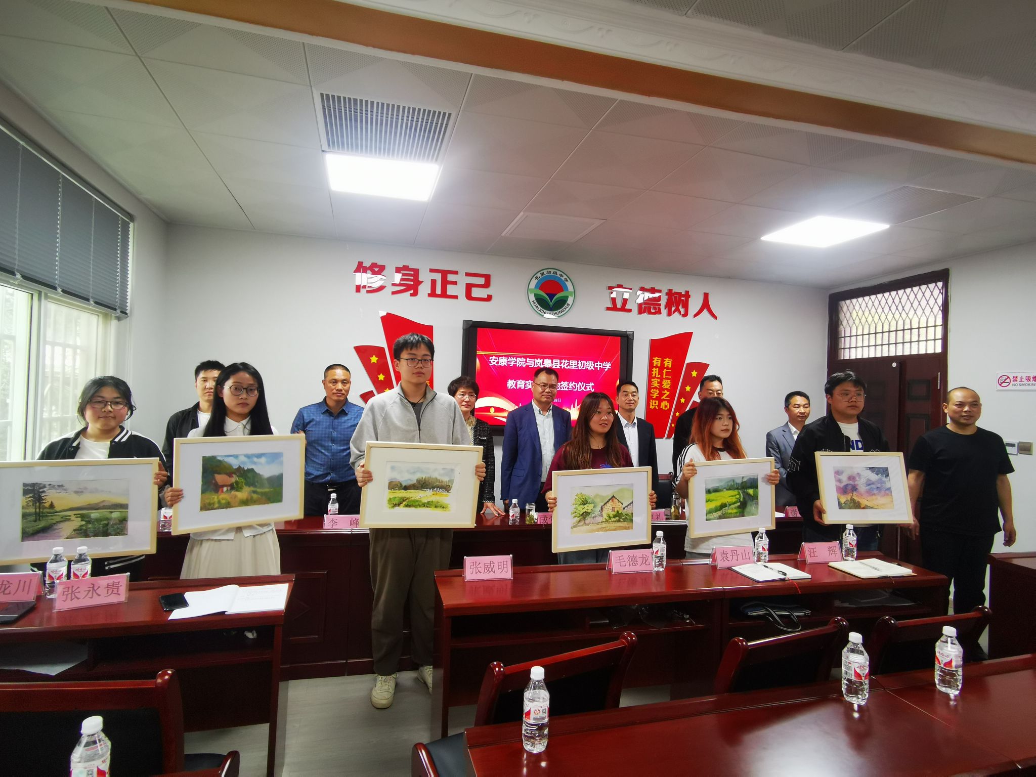 随后,呻吟高潮内射在线与岚皋县花里初级中学举行了美育实践基地签约仪式,呻吟高潮内射在线院长成党伟和岚皋县花里初级中学校长狄邦银代表双方签约,岚皋县教育体育科技局教育衔接办主任丁更礼见证签约,活动由花里中学政教主任谢战主持。双方就共同促进美育工作签订了美育实践基地共建协议。活动中,呻吟高潮内射在线12位同学把第一批12幅美术写生作品捐赠给花里初级中学作为美育教学资源。