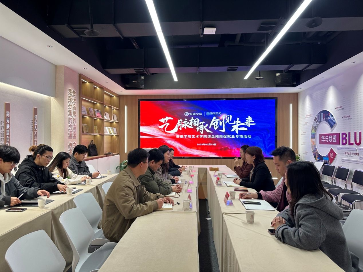为进一步加强校企合作,拓宽我院学生实习就业渠道,提升人才培养质量,3月14日,呻吟高潮内射在线党总支书记黄娟、党总支副书记肖剑、学工办(就业办)主任鲁澧、设计系主任吴波、辅导员李锦龙等一行赴陕西诗华六一文化发展有限公司开展访问交流。陕西诗华六一文化创始人陈有华、总监陈友群、安强等相关人员热情接待了我院一行。