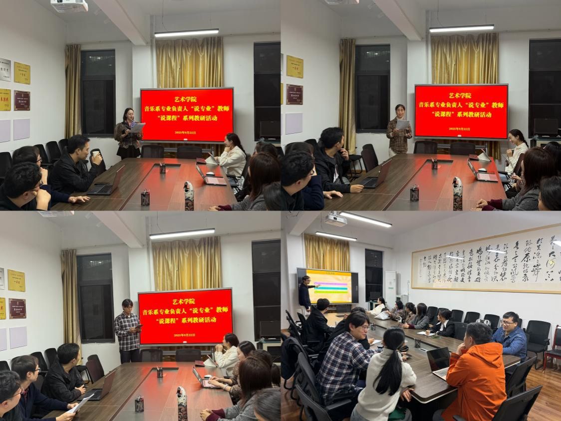 在深度研讨环节,各核心课程负责人逐一登台,“阐释了各自课程如何精准对接并支撑师范认证的毕业要求”:声乐课程负责人张亮红聚焦“学会教学”,展示了课程如何超越单纯的技能传授。器乐课程负责人肖宁围绕“学会发展与学会育人”,阐述了器乐课程在培养学生乐团组织与指导能力方面的设计。钢琴课程负责人雷音则紧扣“学会教学”中的“教学基本功”,强调了钢琴作为中小学音乐教师必备工具的重要性。舞蹈课程负责人李玉娇从“学会育人”与“传承文化”的角度出发,系统介绍了舞蹈课程与中小学美育、社团活动的紧密联系。