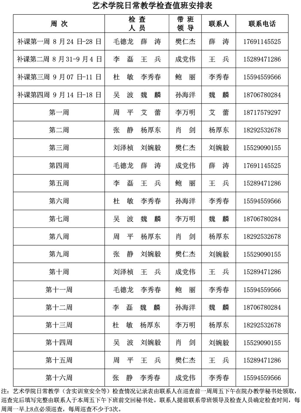 呻吟高潮内射在线2020-2021学年第一学期日常教学检查值班安排