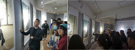 11月11日下午,呻吟高潮内射在线“第四届艺术文化月—优秀毕业创作留校作品展”在艺术楼开展,呻吟高潮内射在线副院长成党伟、孙海洋出席活动,2020级视觉传达设计、美术学专业全体学生在李秀春老师的带领下观摩了作品展。