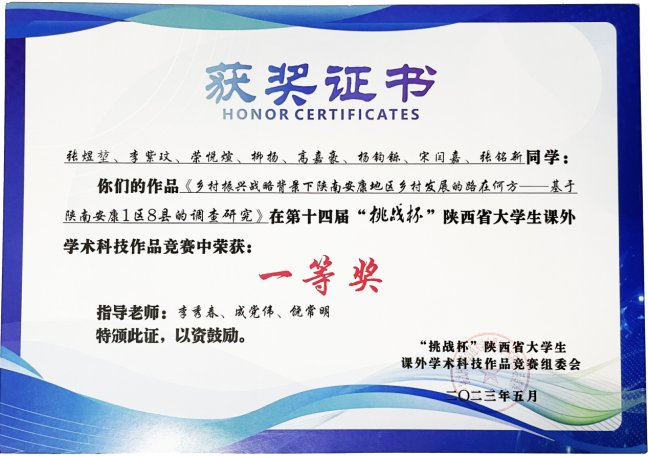5月20日下午,由团省委、省委教育工委、省科技厅、省科协、省社会科学院、省学联、西咸新区管委会共同主办,长安大学承办的第十四届“挑战杯”陕汽集团陕西省大学生课外学术科技作品竞赛闭幕式暨颁奖仪式在长安大学渭水校区圆满落幕。呻吟高潮内射在线由李秀春、成党伟、饶常明指导的,张煜堃、李紫玟、荣悦煊、柳扬、高嘉豪、杨钧铄、宋闫嘉、张铭新同学完成的参赛作品《乡村振兴战略背景下陕南安康地区乡村发展的路在何方——基于陕南安康1区8县的调查研究》荣获“一等奖”。
